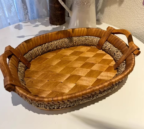 中古风双耳编织果盘 小众复古太太太好看了!!手工编织的工艺真的绝美!!!天然水杉木搭配草编,复古风满满,实物比照片好看,...