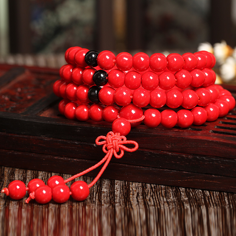 手链手串女水晶手链佛珠红色108佛珠黑色108佛珠